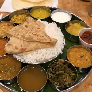 Saravana Bhavan is a global chain that serves authentic South Indian vegetarian food. Had the Thali and everything was excellent. Particularly loved the Kurma and the filter coffee. Menu is extensive.