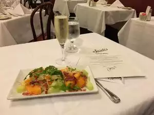 The first hint that this place had gone downhill was that we walked in on a Saturday night easily without a reservation. Several open tables. My salad was good, but entree of spinach cannelloni was very bland. I was served my Sidecar cocktail in a wine glass filled with ice. (if you know sidecars, you understand why this is frowned upon).