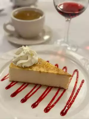 Our tour group had dinner upstairs at Sardi’s. The dining room was very nice atmosphere. The salad very fresh. The salmon was cooked perfect and garnished with sweet potato soufflé. Our dessert was NY cheese cake with coffee.