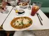 Fun place, retro decor. Got there ahead of lunch crowd so got seated fast. Was raining so limited outside spots, food order came fast and even with half orders lots to eat. Staff very friendly. Thanks