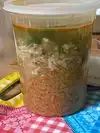 Tortilla soup, it was a disappointing, we asked for two large to go. It was in a see through plastic container. Over half the container was Spanish rice it had very little chicken with cheese and one slice of avocado.the rice settled on the bottom and it was over half of the container.
