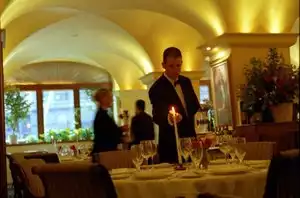First time for quite a few years. I had booked weeks before, and felt a little squeezed in between two other parties so not exactly off to a great start. We ordered a bottle of Amerone and it was presented perfectly and tasted very good. The food is ordered via a special set menu style - with choices in each course. I had the veal for my main course which was very good. Overall the food was great, but in the end it fell short of a 5 star at this price level. I felt too hemmed in and it was not possible to have a romantic meal for two when every word you say is heard by two couples - one on each side. So to me - this has lost some of the charm it had on previous occasions. Perhaps I just got an unlucky table, but given I had booked quite far ahead - it should have been better than this.