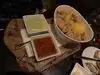 There are so many choices for food in Vegas, but this place caught our eye tucked back in the recesses of The Cosmopolitan amid many other restaurants. My friend and I love Italian, and it is usually safe. But the ambiance is what caught our eye. We sat in the bar area at a cozy little semi circular booth. The cocktails were creative and tasty, and the breads they bring out with three different condiments almost ruined our appetites because we couldn’t stop eating them. We split an excellent mixed salad, calamari (just ok for me) and the short rib agnolotti. Wonderful service and an elegant atmosphere, and jeans were ok! Highly recommend this restaurant.