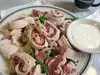 Huge portion but lacking in the traditional pastrami flavor. Definitely not enough coriander seed used in the cure and possibly not enough smoke. Very disappointing if you know what pastrami should taste like.