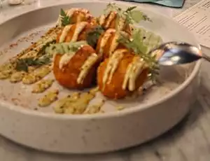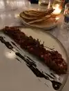 What a super cool place. You do not know where or what your are walking into because there is no sign. We circled the block before attempting to open a door for what we thought may be the place. Upon entering, you see a few steps and assume you should just follow the hallway. The path is lined with old school gadgets, like fire burning furnace. At the end of the hallway, you finally see a glimmer of life and are relieved, that after all you may be at the correct place. This place is very punctual and adheres to their reservations, and the host makes that very clear. Even as guests who had reservations, we couldn’t get a drink at the bar. We had to place the order with the host, who brought us our drinks while we waited in the hallway. The interior is so stunning. The decor and set up is very tasteful done. It has a speakeasy vibe with an absolutely beautiful bar. The staff is entirely males. The restaurant felt very private and exclusive. For drinks we had their Four Grain Old Fashioned, which was made to perfection. If you like whiskey, there's a huge menu of almost every whiskey you can imagine at reasonable price as well. The menu is not vast, thinks small plates, but what they offered is made well. We had their bread and butter. It was your basic small vague served with butter. Their arancini was very good. It’s served with an avocado cream. We also ordered their tomato salad, which was absolutely amazing. It was balanced well in terms of flavor and the pepitas were a pleasant touch. Our server Dan, was very attentive and was able to offer us options, given our dietary restrictions (we are vegetarian). We wished we were staying closer to the restaurant so we could go back. When making a reservation, you can choose table seating or bar seating. table seating is in the middle of the small area and provides better view of the restaurant. there are two bar seating available - one facing the bar, which is the best, the other faces an open kitchen, which is the least appealing seats as your back is towards the beautiful interior.