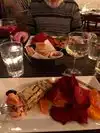 I pick this place after looking at the menu and seeing that all the options looked so good. We started with the house wine and pizzetta. This is large enough for three people easily. It was tasty and the sauce was nice but I did prefer the foccicia in the basket on the table. That was soft warm and a bit savory. My husband went with the special, turkey lasagna. It was a good choice with it's ground turkey, tiny bits of carrots and layers of thin noodles in a delicate sauce. The portion was very generous and would have been best shared. I had the salmone scottadito which was also very good. Presentation alone was worth it. We shared apple crostata for dessert with espresso and a cappuccino. All was worth the calories.
