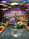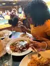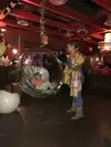 This restaurant is a must try. It is so unique. From the bathroom booths (crazy cool), hype music, gorgeous fountain with tables surrounding its perimeter, and the most delicious Thai food I have ever eaten. We started at the bar, while the children enjoyed the indoor swings close by. I got two piña coladas with a wonderful amount of alcohol. We made our way to our table for 7. We started with 4 orders of spring rolls for the table. They come as a trio for $7 each. Very yummy. I ordered the pineapple fried rice (it came highly recommended) and I added tofu. My niece ordered the orange chicken, my son the pork chops and my brother in law some kind of seafood in an edible dish. Every single one of us cleared our plates. I am a light eater, but I just couldn’t stop enjoying every single morsel. Flipping FABULOUS!!!!! It was so delicious and the portions were SUPER generous. You have to check this place out for the decor alone. #mindblown The only “negative” they kept trying to put other people’s food on our table....it could have been a positive but we are honest folks and let them know it wasn’t ours.