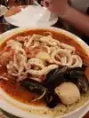 I had the Seven Seas stew. It is described on the menu as "spicy lobster-tomato broth" as the base. It had zero flavor. My wife had Angel Hair Pasta with Sea Scallops. It had zero flavor as well.