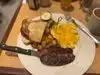 A nice looking place with Christmas decorations & music. The waiter Victor I believe very friendly. Crab cakes to start - tasteless. More like potato cakes. Burger ok, bacon on it was precooked as were the grey chips! New York steak!! Don’t order this if you have false teeth! TOUGH. Suggested tip 18%, my tip - serve better food.