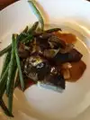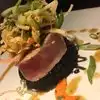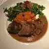 This was our first time at this restaurant, but it won’t be our last. The food was mostly delicious and the prices quite reasonable considering the place is billed as “upscale.” We began with a good champagne, served by the glass. I love it when restaurants offer a wide variety of better-than-average wines by the glass — it allows you to request a sip of several so you can better choose what to have with your meal. For starters, my wife ordered the Golden Beet salad while I had mushrooms stuffed with crab, shrimp, and spinach. She raved about the salad, and I who can’t stand beets even liked the bite she gave me. My mushrooms were good but not great. The flavors of the ingredients all seemed to roll into one, with nothing distinctive. The portions were generous. My wife could have made a meal of the salad, and there were (I believe) 8 mushroom caps heaped with the stuffing mixture on my plate. Our main courses were grilled sea scallops for her and boneless beef ribs for me. To go with these, we sampled three reds and chose a California cab. Hers: Most restaurants will serve you 4-6 scallops; her plate came with 8. They were accompanied by broccolini and a leak/squash risotto. Although she would have preferred a more even balance between scallops and accompaniments, she ate it all and enjoyed every bite. Mine: The boneless ribs were among the best dishes of any kind I have ever had anywhere. If you like perfectly braised, cut-it-with-a-fork beef, ORDER THIS. I don’t even remember what the accompaniments were. All I know is that I’ll get it again next time. We probably wouldn’t have ordered dessert, but our waiter came to our table with a selection of what I might describe as tall hexagonal shot glasses, each filled with a unique take on a more a traditional dessert. The traditional parts were layered with (I think) thickened cream. I remember key lime pie and pecan pie, but not the others. We chose the pecan pie to share. A taste of heaven. And a perfect conclusion if you want to sweeten the mouth without bloating the stomach. Speaking our waiter, he was as good as they get. I forget his full name, but he went by Ty. He was knowledgeable, helpful, cheerful, and attentive without lurking. I can’t rate him highly enough. Or, actually, yes I can. I rate him equal to the beef ribs (which I believe he recommended). There were two negatives, but they were minor. First, our place in the restaurant was a little noisy, probably because it was fairly close to the bar area, which seems to be very popular. But the ears soon adjust, and the noise becomes background. Second, when I requested a tasting of three reds before making a final choice, it took a long time for the tasting glasses to arrive. Ty apologized and attributed the delay to a very busy bar, understandable I suppose, since this was a Saturday night. Overall, this place is excellent. We’ll definitely go back.
