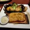 ordered plank salmon and crab cakes and salad portions sizes good for the money food was hot an week done service an ambiance . special for a good diner after a long day
