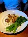 Four of us met here for dinner Sunday night. Rain started to bucket down just as we arrived at 6:30pm. We decided to let the valet park our car and was given a coupon for free parking as we went into the restaurant. The restaurant appeared to have a nice ambience for a good dinner and conversation as we were placed at a table away from the bar. Our server, Daniel was terrific, friendly, helpful and very knowledgeable about the menu. We started with the Lobster Flat bread- everyone love their share of 2 slices. This was followed by the stuffed mushrooms, also delicious. Around the table, we had lamb shank, a filet steak, cedar plank salmon, and caramelized scallops. All were thought to taste great. Finally, not the restaurants fault, midway through our mains, voices and laughter from the table of 7 ladies and one gentleman behind us grew louder and louder to the point that conversation at our table became nearly impossible. We finished our dinner and left soon after.