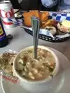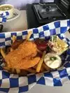 We had fish (cod) and chips (french fries), clam chowder and onion rings. The fish was done very well, crispy on the outside and cooked just well enough that it was cooked just right on the inside. The onion rings were super tasty and done to perfection. I like that the clam chowder was full of clams and thick. I definitely will go back.