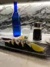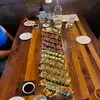Busy place so make a reservation! Expensive ambiance. Knowledgeable bartender with great suggestions and drinks. Friend/Business dinner for 6 - quality service, beautiful and delicious sushi,etc. Served on one long board, length of our table for sharing. Started with garlic edamame. Trilogy, and Distinguished gentleman were my favorites. Yellowtail was superb. Ordered a side of Tobikko roe - small bright salty roe with no fishy taste.