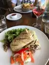 First visit, good service, very good food. Suggest Moroccan chicken lemon soup, Caesar salad, and a glass of rose. Hard to beat. Lovely outdoor lunch.