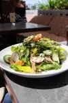 The outdoor area is very nice, but even inside gives a feeling of being outside with the open walls. The food is good, with a nice amount of kick to some of the items. They start you off with break accompanied by an assortment of olives, a nice touch. We had the Moroccan chicken soup (a special that day), the butter lettuce salad, and the free range chicken. All were quite good in quality and prep, the salad very generously sized so if we had added a protein would have been an satisfying entree by itself. The chicken had a unique (in a good way) sauce. Staff was friendly and attentive.