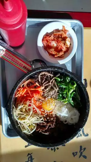 Never disappoints! Food fresh, hot, of good quality. Absolutely authentic and quite reasonable. Set up like a cafeteria but cooking is done on one side of counter, eating is done on the other. Menu is in grocery store above entrance to cafe, ordered and paid for at cash register before entering food section and picking up order. Unlimited Korean sides can be self-served. Hot tea as well is all you want. Entire setup is simple and delicious. Personal favorite is Pork Neck Bone Stew! Once tried the eater is likely to return for more again and again! The rest of the offerings are great too. The novice should ask other eaters what they like and try it! A pleasant surprise is guaranteed by this critic!