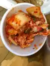 The layout of this place to dine-in is a hot mess. The menu is by the cash registers or on the side wall by the cafe by the register. You will have to pay for your food and then give your paid receipt to the counter at the cafe once ordered and paid at the counter. I saw another guy looking perplexing for a menu by the cafe. Is it hard to post the menu in the cafe for reference at all. I get the owners want to keep the ordering and payment at type registers. The menu shows Kimbap, but it's made early in the morning and left in the cooler. What's in the cooler is what's available and nothing can be made fresh, including the Kimbap or the japchae. The Japchae should not be cold. Got two krab stick and one bulgogi Kimbap, spicy noodle, tteokbokki and banchan sides. $35.19 The banchans only comes with their soups, stews and meat dishes. The spicy noodle comes with a side of kimchi. The Tteokbokki came out in a big cold soup bowl container, that’s not usual. The sauce was good, good heat, but the rice cakes were beyond overcooked and mushy. I asked the staff to remake it and make the rice cakes less mushy. Second round is still too soft and still mushy for my preference. I think it might do them some good to pan fry the rice cakes first before drowning it in the sauce. You know your rice cake is mushy when you grab it in the middle and it bends in two or even worse breaks into two halves. The sauce is decent and is spicy. No hard boiled egg with their tteokbokki. The cold noodles seem to be overcooked as well, slightly mushy. The best part of the cold noodles is the sliced cucumber and the thin sliced radishes. The rest I could do without. Disappointing meal. Skip it and buy ingredients and make it yourself or go elsewhere. Banchans: hard cold japchae, bland soft tofu, old and bad tasting kimchi and so-so zucchini. Let’s just say I am glad I didn’t buy the japchae at all. The banchans are worth it if they are free. The krab Kimbap is okay, nothing special. This place doesn’t care about customer satisfaction or customer service from what I can tell at all.