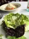 Very pretty outdoor courtyard let us enjoy a leisurely afternoon glass of wine. Perfect for a sunny September. The set menu offered a variety of pastas and 3 salad choices for $20 The wine list by the glass was small but offered 4 good reds. Whenever there is rabbit on offer, it’s my first choice, and the fresh cavatelli with rabbit ragu with dollops of ricotta and sage butter was great. My only quibble was the decision to add a few raw Brussels sprout leaves, for texture I guess. ( I had to remind myself that the chew was vegetable, not gristle!). My husband loved the Bolognese rigatoni. His tomato soup was flavorful, thickened with bread crumbs and slightly spicy. The service was prompt and professional. In fact, when I pointed out to my server that there were a large amount of lees in my glass, she replaced it.