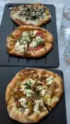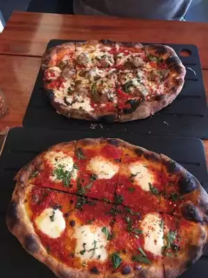 Actually quite good pizza. The wood fired crust is really what makes it. Toppings a bit naff: too much tomato sauce, and funny Parmesan(?). Would have given the pizzas a 3.5, but the wine was the worst we ever had by the glass. Really cheap and nasty. Spoilt the meal. Beware, very, very busy Sunday and Monday as limited dining options in the area those nights.