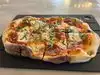 Unusual crusty pizza with a tasty topping. Good level of service and way to manage the waiting list of clients.
