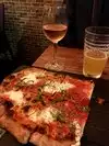 Greetings and salutations from a beautiful room. Extra coin spent on the buildout. Server was pleasant and attempted an upsell or two. I always appreciate that as a former restaurant manager. Was also timely and did a solid job Got a kale salad. Unevenly dressed but good. Pine nuts toasted correctly. Some chile spice added was pleasant. Ate faintly like a kale Caesar. Would get again but won’t remember tomorrow Tom’s tomato soup. Came out awkwardly between warm and cold. Tasted good. But the temperature was extra weird. Probably not intentional. Came w toasted focaccia that was more like a screwed up crouton. Would probably not get again. Italian sausage and red pepper pizza. Cheese and crust both an absolute abomination. Crust. Cracker like. No chew. Broke apart like really stale pastries in your mouth. Cheese. Melted weird for shredded cheese. Oven no where near hot enough go get color on it (oven either run by ppl that don’t know what they’re doing or it’s a gas oven that doesn’t get very hot w wood sticks for ‘flair’. Sauce. Basic tomato. Ok. Italian sausage and peppers. Good. Correct amount of toppings too. ‘Simple cheese’ or whatever they call it. Without the aid of the relatively good sausage for a topping it was challenging to even eat it. When it started to cool off (my sons third slice) he spit it out bc of the texture of the cheese (he’s almost 12–he’s not two or three). Same terrible cracker crust. Chocolate pudding. Really dense but quite good. Doesn’t much need the olive oil on top or the complete afterthought wafer-thin biscotti on the side. Kid and wife enjoyed. One cocktail and one Pilsner. Both fine. Check fairly reasonable but not cheap at a little over $100 before tip. They feel the need to change the shape of pizzas. Not sure why. They should probably work on making better pizza crust or getting an oven that delivers a better product even if it looks less fancy. If you don’t like pizza, by all means, go. The other items were ok. If you actually like pizza and want a serious pizza you’d do better to gnaw off your own hand.