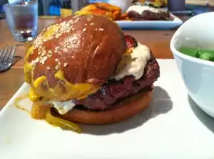 Great Food, lovely staff. I loved the burger! These guys switch up the menu daily so you're guaranteed something different. Chef has a ton of excellent options. This particular burger is a specialty they have and it was quite tasty. Lots of microbrew choices as well. Enjoy!