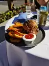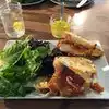 Came here for lunch with a group. I had the buffalo chicken sandwich with side salad. The buffalo chicken sandwich was good, you can tell it was organic chicken by the toughness, the flavor was great but a bit messy and greasy for lunch. The salad was amazing, the fresh in house made lemon vinegar based dressing. A great zesty choice. I will definitely recommend the sandwich again. Others in the group had the lobster roll but I wouldnât recommend this because it was small and tasteless. This is not a Bostonian style lobster roll.