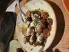 Visited on a cool weekday night, and sat outside near the fire pit. This was probably better for us since it was extremely loud inside in the crowded dining room. We shared an appetizer of mussels, then each got a lobster sandwich at the suggestion of our server. The mussels were seasoned in a spicy brew (with sausage crumbles); once you we're accustomed to the spice , they were quite tasty. The lobster roll, though, was a soft pita stuffed with large chunks of succulent lobster - yum!
