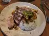 Food was good, just they said int he menu salad , add chicken for $6. When I got my plate was chicken with a bit of salad. My wife had same salad and she got a pretty good size. When the chef passed by and asked him how come plates were different he flat our lied that they are the same. You see the picture and judge. Mine closer is a flat plate, my wifeâs was a bowl.