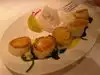 Service was good and genuine. Wine by the glass also has good selection. Starter was half dozen of oysters which tiny. The 5 piece salmon with ginger was very good. I'd the whole fish which was deep fried - is good. Partner had Scallop main - presentation was poor and scallop size is pretty small. Their dessert ice cream 2 huge scoop which was too much. Overall is a nice place with good service.