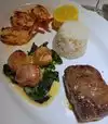 This restaurant was recommended by our hotel and they were right on. We were able to get in with no problem at 6 pm with an online reservation. The service was spot on and more importantly the food was top drawer. My wife had the grilled garlic shrimp. There were more than just a few shrimp and they were very good. I had the Halibut on a bed of zucchini and an excellent sauce. This had to be one of the best tasting fish dishes l have had in sometime. We were both very impressed with this restaurant and its high quality operation. A highly recommended place when you’re in the area.