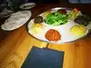 My first experience with Ethiopian food, and I loved it. We ordered lamb, beef, and chicken dishes, with the spongy, fermented bread. One eats with their hands, and uses the bread for scooping up the dishes. Very filling, and satisfying. The live music was an added bonus.