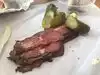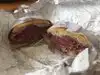 We went here for Pastrami sandwich..$18. so, very pricey. My husband had that. It comes lean, medium or fat laden LOL. We got medium, also comes with a pickle. Had it on rye and it was a good size and very tasty. I got the lobster roll which was $15. and worth every dime. Loaded with lobster. On like a hot dog roll. We shared both items. Seating is almost non-existent, two small tables we did get them though so worked out great, otherwise is mostly a take out place. The owner or help were very friendly. Would definitely go back and recommend.