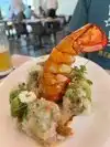 We ate outside on the patio and with the fans it was quite comfortable. The patio overlooks the river walk. We had a couple special rolls one of which was the Smoking Bomb. They were super tasty. Also had a cucumber and seaweed salad with shrimp. Also very good. Service was great. Had a Japanese beer. Pretty extensive saki menu.
