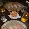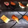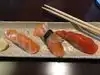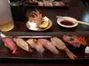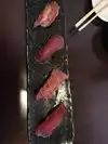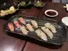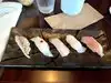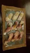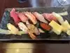 There were five or so pieces of sushi that were excellent-smoked etc. most were fair and not very creative . Saki bottle they highly rec also just okay. Dishes came out fast, no atmosphere so overall an average experience.