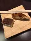 Missed this restaurant in May and came back from California to try it on a rainy Saturday in Seattle. The appetizers consisted of raw oyster(yummy), cooked eggplant with bonito shaving (good), the cooked salmon with mushroom and sauce (so,so), raw smoked fish (very tasty). Next the sashimi, this included three pieces of tuna (ok), two pieces of salmon (average) and two pieces of bonito (really outstanding soft and sweet, uname.) The pickled ginger was tender not too sweet and not too spicy. I ate it all, a rather big amount in a small bowl. Rated it one of the best I have had. Next came the three things of cooked entree. One small piece of quite raw scallop, hidden in a blackish some what sweetish sauce with panko on top. Great presentation but the combination Raste is not the best. The two pieces of fried eel bind together with seaweed and large piece of bamboo shoot. The bamboo shoot was crispy and fresh. Not sure about the sweetish sauce dripped over it. The cod was written up in the NYTimes as one of the dishes to order and was amazing amazing. May be my piece is small and a bigger piece for the whole appetizer May have been better. Also have some sweet marinate on the outside. I was getting full and had to put the fish and the eel aside. These three items were not my favorite. Then came the bonito soup with two crispy rice and potatoes cakes. Interesting. Next came the sushi. There were 7 pieces. I ate one before I took the photo. There was geoduck, sweet shrimp with a fried head that I ate first, wild hamachi (though all hamachi was wild and this one has a red half to it), special mackerel in season, a perch?, toro chopped wrapped in seaweed and fish eggs wrapped in seaweed. The geoduck was great. The hamachi, and one of the white fish was very smooth going down. All the pieces were extremely fresh. The toro was the last piece I ate. Wonderful. Left a great taste with me. Uname. Dessert was green tea ice cream with some dough wrapping, some strawberry sauce and two slides of strawberry. Great presentation. Would have been better just have a small scoop of ice cream. Or just leave the toro as my last taste in my mouth. Tummy is very full, walked back to hotel in pouring rain.