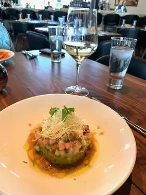 Heard good things about this new restaurant and went to have lunch here. First I noticed they have the biggest doors in Austin and inside was a nicely open setup with everything in view like the bar, kitchen, inside and outside seating area. Lots of glass walls to bring in the natural light and artwork all around. I spent some quality time looking at it. We were seated and given menus. I decided to order the Ceviche and a glass of wine. My wife ordered Fried Shrimp on Sweet Potato Fries. The service here was top notch and this place seems dedicated to adults especially for date night. The restaurant bar is pretty big and there is a chef bar to dine at while seeing your food being prepared. Our food arrived looking very impressive and my ceviche was really good. The tortilla chips were freshly made and delightful. This was a wild choice from the menu and turned out to be a winner. My wife’s shrimp was very good along with the sweet potato fries. This seafood restaurant is close to home and definitely be back for more. As for parking, during lunch I just parked in front and not sure have valet for dinner. But do notice they prefer to setup dinner reservations using the Resy app.