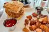 It all started when I received an email from the Shore Raw Bar & Grill showing a delicious looking list of brunch items with photos of the entrees. The one that caught my eye was the Shabang Chicken Biscuit. So when the weekend arrived we decided the go to the Shore for Sunday brunch. We have never been here on a Sunday morning and surprised how packed it was with a band playing. The next time will remember to make reservations, but were seated quickly. My wife looked over the menu but I knew what I wanted. The atmosphere was excellent and enjoy dining here on a regular basis where it seems the menu changes throughout the year. It is better to dress up business casual and leave the flip flops at home. It is always nice to enjoy a special outing with a meal and live music. My surprise surprise…Shabang Chicken Biscuit arrived! Normally you would think a non-seafood item here would be a bad choice but it was very good. It was a large chicken sandwich where the bun was a biscuit but after cutting it in half the biscuit started to come apart. I secure one side with the food pick while eating the other. The chicken was delicious with a crispy honey taste. It came with a side order of potatoes cut in small pieces nicely seasoned. Ketchup and a dipping sauce was also provided. At some point it was easier to use a fork and knife to finish off my chicken biscuit plus made it easier to dip in the sauce. The Shore also has other brunch features on the menu and will have to return and try them. I did notice even though there was parking available a lot of slots were taken and a new place next door is a few months away from opening, so suggest parking in the back if can’t find a spot.