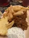 Came here with my husband for Sunday lunch, and for about 11 bucks I got a pork plate that had two huge porkchops on it, a massive baked potato, coleslaw and garlic bread, it fed me for three meals. Such good value. Service was great and I loved the homemade barbecue sauce.
