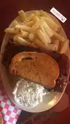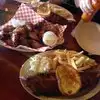 Near the hotel where I was staying. A very traditional type bbq setting, combo sports bar with rustic wood interior, including several stuffed deer heads. The ff's were great, a little crunchy on the outside and soft inside, piping hot. I love bbq, with brisket my favorite. I ordered the brisket plate, and the brisket was the toughest I have ever eaten. I told my waiter, Chris and he promptly replaced it with a new order. The server who brought it said that it was cut the wrong direction. The second order was much more ttender than the first. I would like to try the other meat choices another time. Ice cold beer.