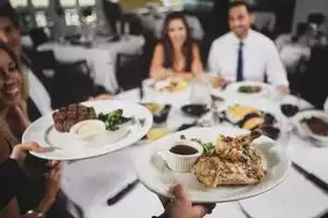 Dinner for two on a Saturday night. Everything was excellent. Clean, great ambiance, awesome service, food was top notch. We both had steaks, cooked perfectly, huge portions, tender and full of flavor. Sides were big enough for four people. I will go back whenever I want a top notch steak experience.