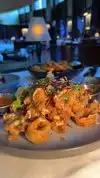 I ate here because it is in the hotel where I was staying and room service wouldn’t answer the phone. I ordered the lobster bisque and calamari. I wasn’t impressed with the bisque. It tasted strongly of shrimp paste, which is not something I dislike, but also should not be the dominant taste in lobster bisque. However, the server comped it without my even asking her to. The calamari, on the other hand, was perfectly cooked. A crispy crust but also melt-in-your-mouth tender. Although I was sitting alone and my server had larger tables that she doubtless would make a lot more money on, my server was excellent and made me feel welcome.
