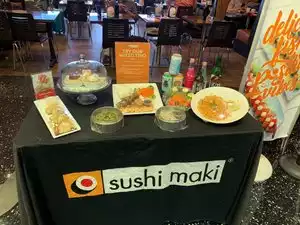 If you can spare just a few minutes to get away from the fast food chains go to Sidelines. The crab biske is real tasty. Prices aren't bad either.