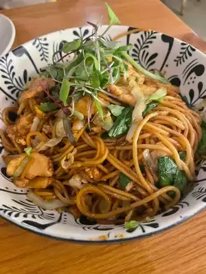 I had a wonderful experience at this place. I ordered the Mie Tek Tek with chicken and lite heat, and it was bursting with flavor. The service was impressively quick and friendly, and the staff was attentive, consistently checking if everything was to our liking and offering extra plates for sharing. I'm already looking forward to returning and exploring their other enticing dishes on the menu.