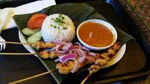 My family is from Singapore and I am a huge fan of Mee Goring and Satay. This spot in the Farmer's Market in L.A. by The Grove gets pretty close to traditional Singaporean cooking. We had the Mee Goring and Chicken Satay and we loved it. The spices were good and the sauces were excellent. Highly recommended if you want to try something different or you miss a little bit of home.