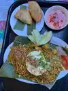 Visited this place at the Farmers Market in LA. Ordered the Me Goeng (chicken and noodles) which was very nice and tasty. We also ordered two mango juices, which tasted very artificial. Our brief experience of this place was a good one, the food we had was very nice and tasty and the food other people ordered looked very nice. It was also very busy which is always a good sign. I definately plan to visit this place when I'm in LA again.