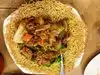 Food was bad, restaurant was dirty, and the bathroom was a nightmare. I had three orders of food: grilled chicken with rice, seafood crispy noodle, stir fried rice noodle with beef. For the grilled chicken with rice, the meat tasted rotten and the portion of rice was too large compared to the protein. Not appealing at all. Seafood crispy noodle was mediocre, until I ate the piece of chicken in the noodle and again, it tasted rotten and disgusting. For the stir fried rice-noodle with beef, the noodle was literally soaked in oil. Every bite I took, The oil splattered in my mouth. Disgusting...