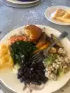 WOW - Jorgina Pereira's cuisine is A-M-A-Z-I-N-G-L-Y delicious and artistically presented - the stewed Ox-tails were my favorite, however the sauteed collard greens and hibiscus tea were also stand outs - the brownstone is comfortable and a beautiful complement to Jorgina's exquisite hospitality - while some of the guest chose to dine inside next to the buffet - the real party was outside in the garden under real grape vines,who's aroma just added to the delightful atmosphere - there were salads, plantains, rice, black beans with and without meat, salmon, chicken, corn and string-beans and the most mouthwatering yucca flour and cheese mini muffins - the roasted pineapple, green/red pepper and onion relish served with pita chips was distinctive and so good I had to take some home. If I lived in Chi-town I am sure I would be at brunch here at least once a quarter.