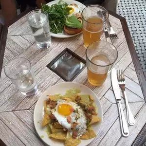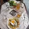 The atmosphere is very nice in this restaurant / bar. We had a duck and fennel sausage, burrata and veg burger. Everything was well cooked and made with fresh ingredients. Stout beer was super tasty